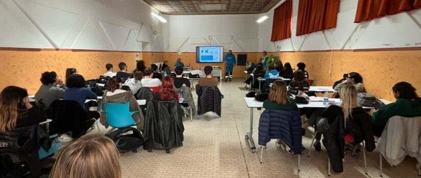 Sabato 16 novembre si è svolto nel plesso di Salita Napoleone il consueto corso BLSD promosso attraverso il progetto ASSO dalla federazione Misericordie e regione Toscana. A questo appuntamento hanno partecipato le classi 5A e 5B del liceo delle Scienze umane, ma nei giorni scorsi il corso aveva già interessato anche le classi Quinte Classico e Scientifico del plesso del Grigolo e prossimamente riguarderà anche gli studenti che frequentano le Quinte del plesso di Concia di Terra. Un’occasione importante di formazione per i nostri ragazzi che li aiuta ad essere cittadini responsabili. Dopo un primo momento di formazione teorica, i ragazzi si sono cimentati nella parte pratica, prendendo confidenza con l’uso del defibrillatore e con la manovra di Heimlich per la disostruzione delle vie aeree.