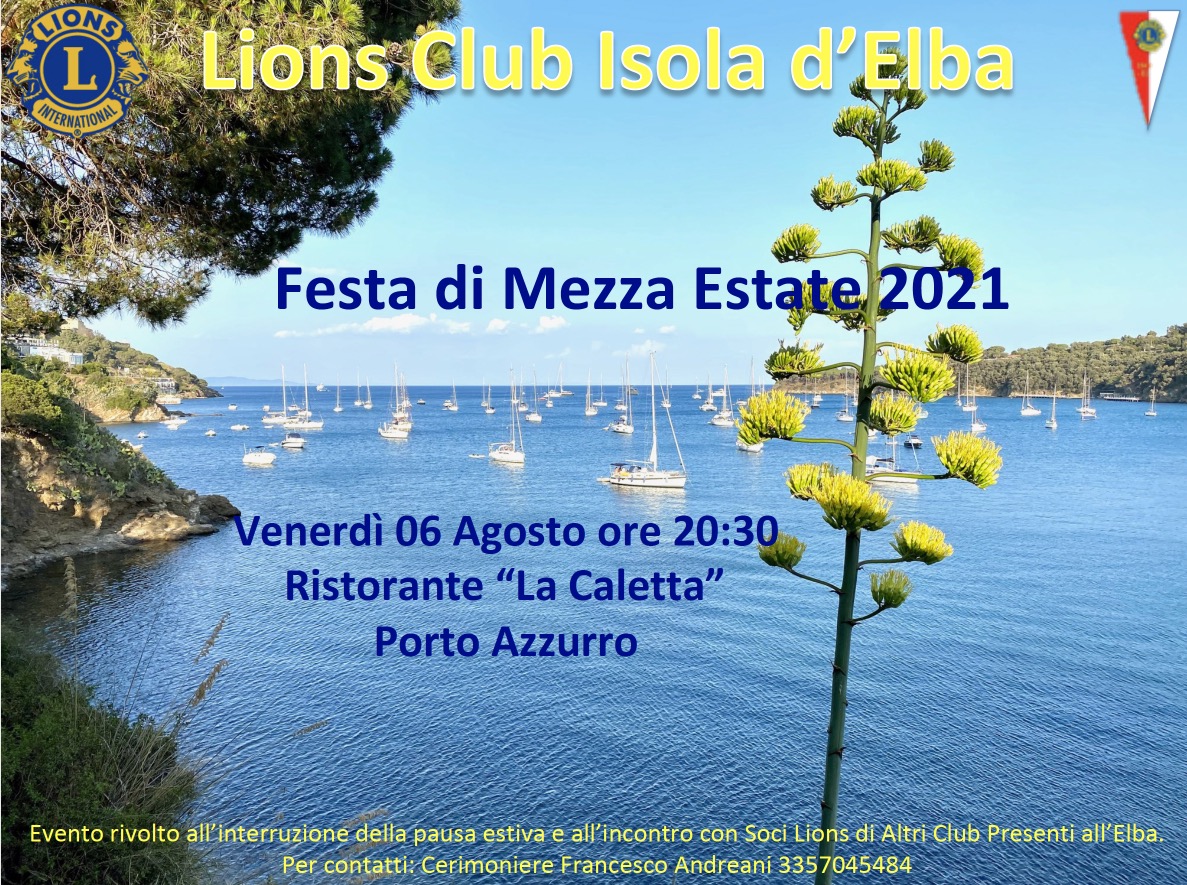 “Il Lions Club Isola d’Elba ogni anno organizza una Cena di Mezza Estate dedicata, oltre ai Soci del Club dell’Elba, anche ai Soci dei Lions Clubs in Italia o all’Estero che in questo periodo sono in vacanza all’Isola d’Elba.