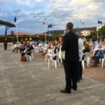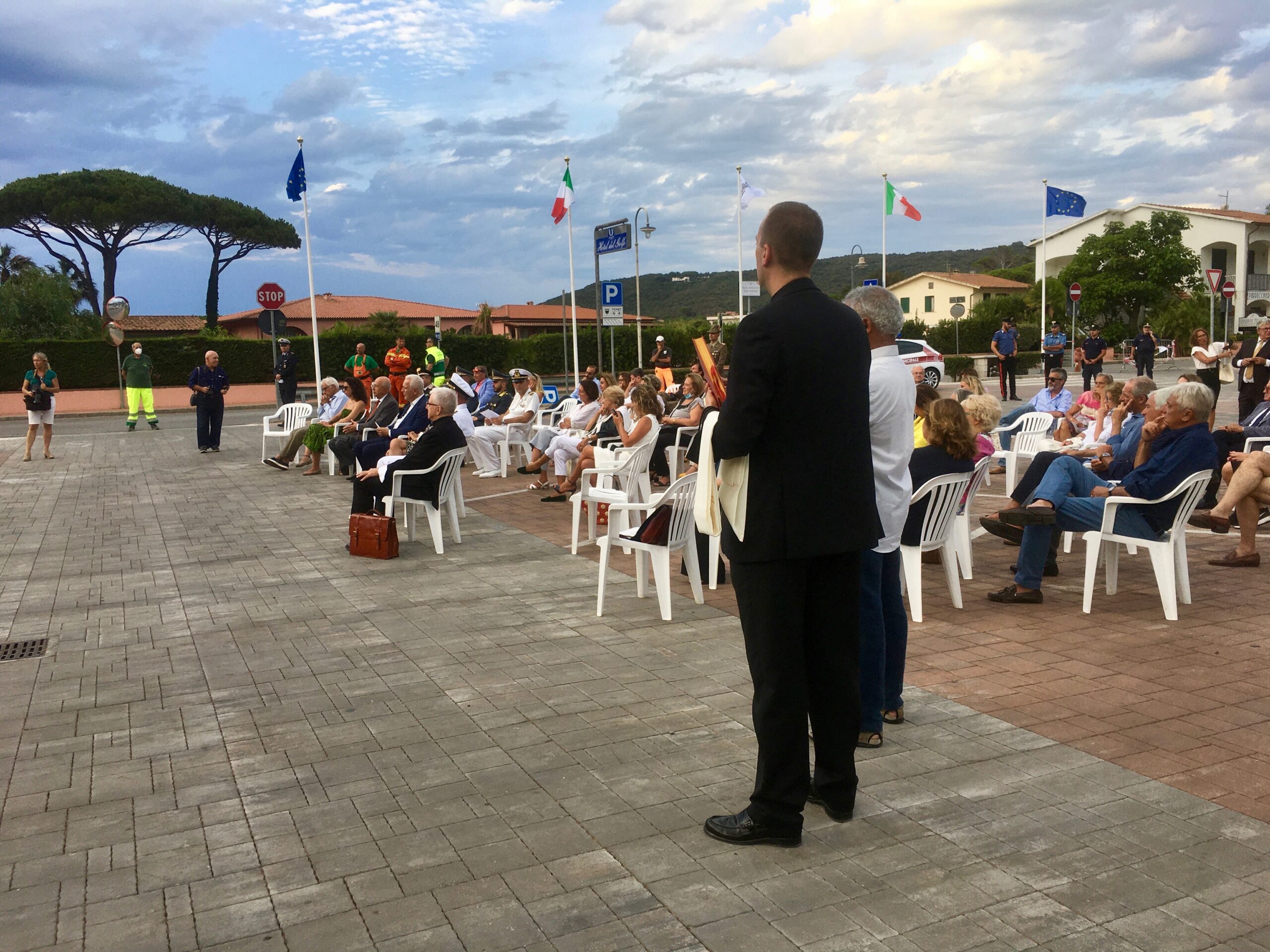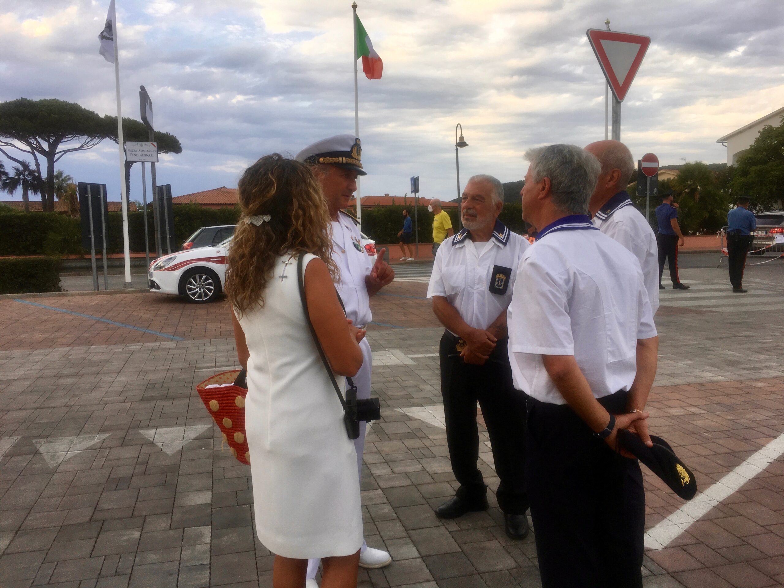 Una piazza dominata dallo spirito del mare con il bianco della Marina e il vessillo dell’Associazione Nazionale Marinai d’Italia per una cerimonia tra commozione e intensa partecipazione scandita dalle note della Filarmonica di Portoferraio.