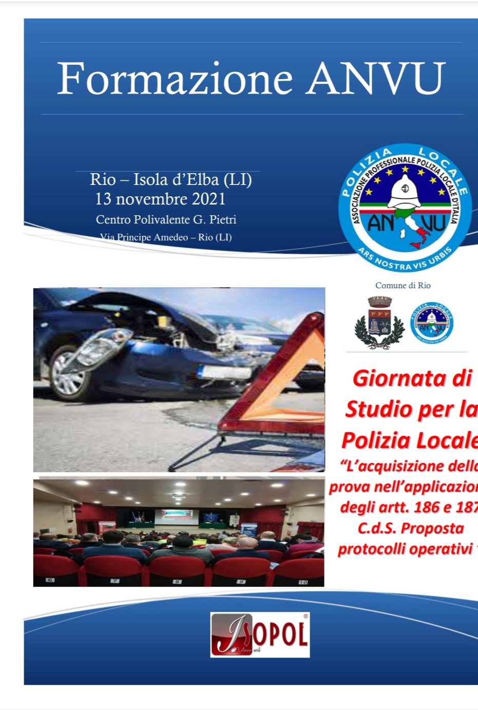 Sabato 13 novembre prossimo si svolgerà un’interessante giornata di studio dedicata alle forze dell’ordine e aperta anche alla partecipazione degli avvocati sul seguente tema :”L’acquisizione della prova nell’applicazione degli articolo 186 e 187 del codice della strada”. Proposta di protocolli operativi”. I lavori si svolgeranno presso il centro Polivalente sito in Rio Marina a partire dalle ore 8:30.