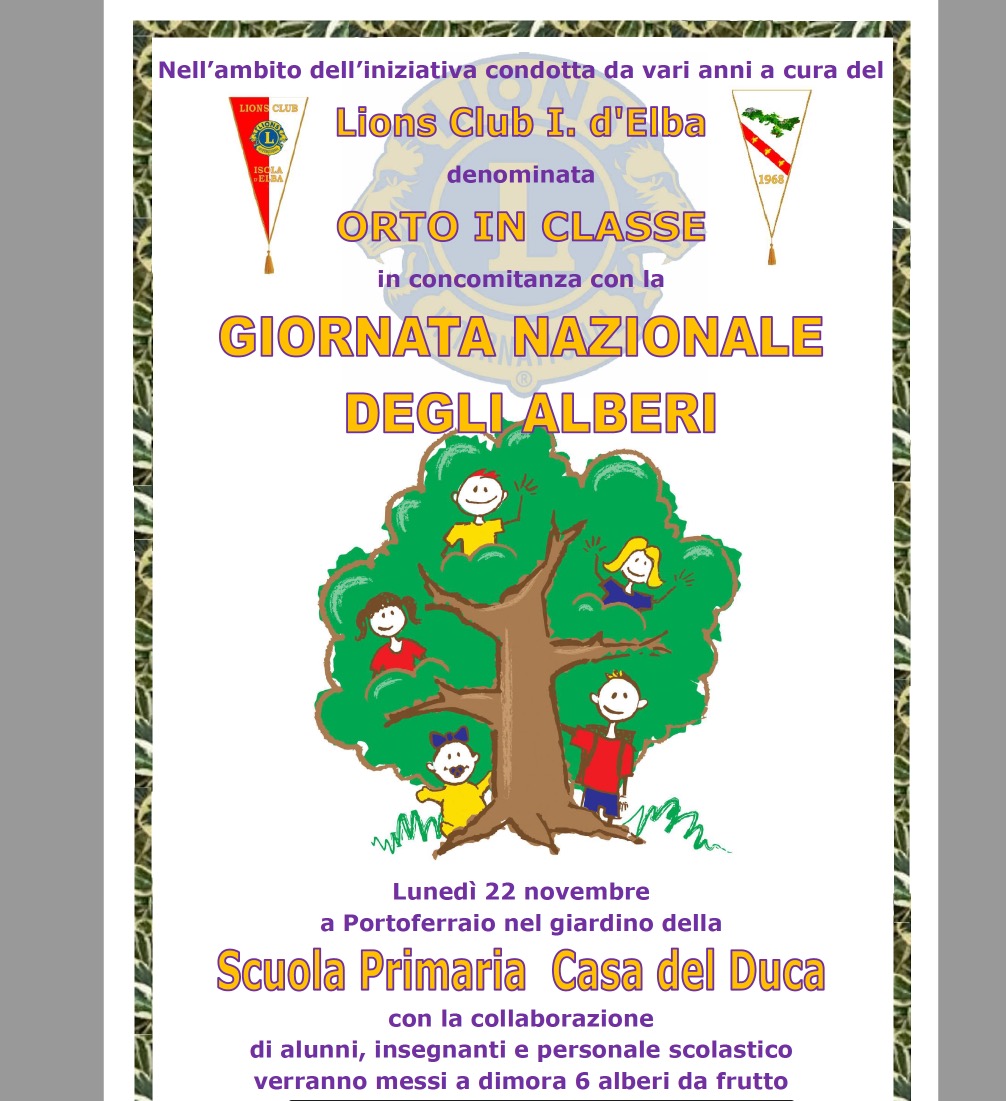 Dando seguito all’iniziativa in atto da vari anni denominata ORTO IN CLASSE, consistente nel coinvolgere gli alunni nella coltivazione di ortaggi nel resede della Scuola Primaria Casa del Duca organizzata dal Lions Club Isola d’Elba, lunedì 22 novembre verranno messi a dimora nel resede del plesso sei alberi da frutto.
