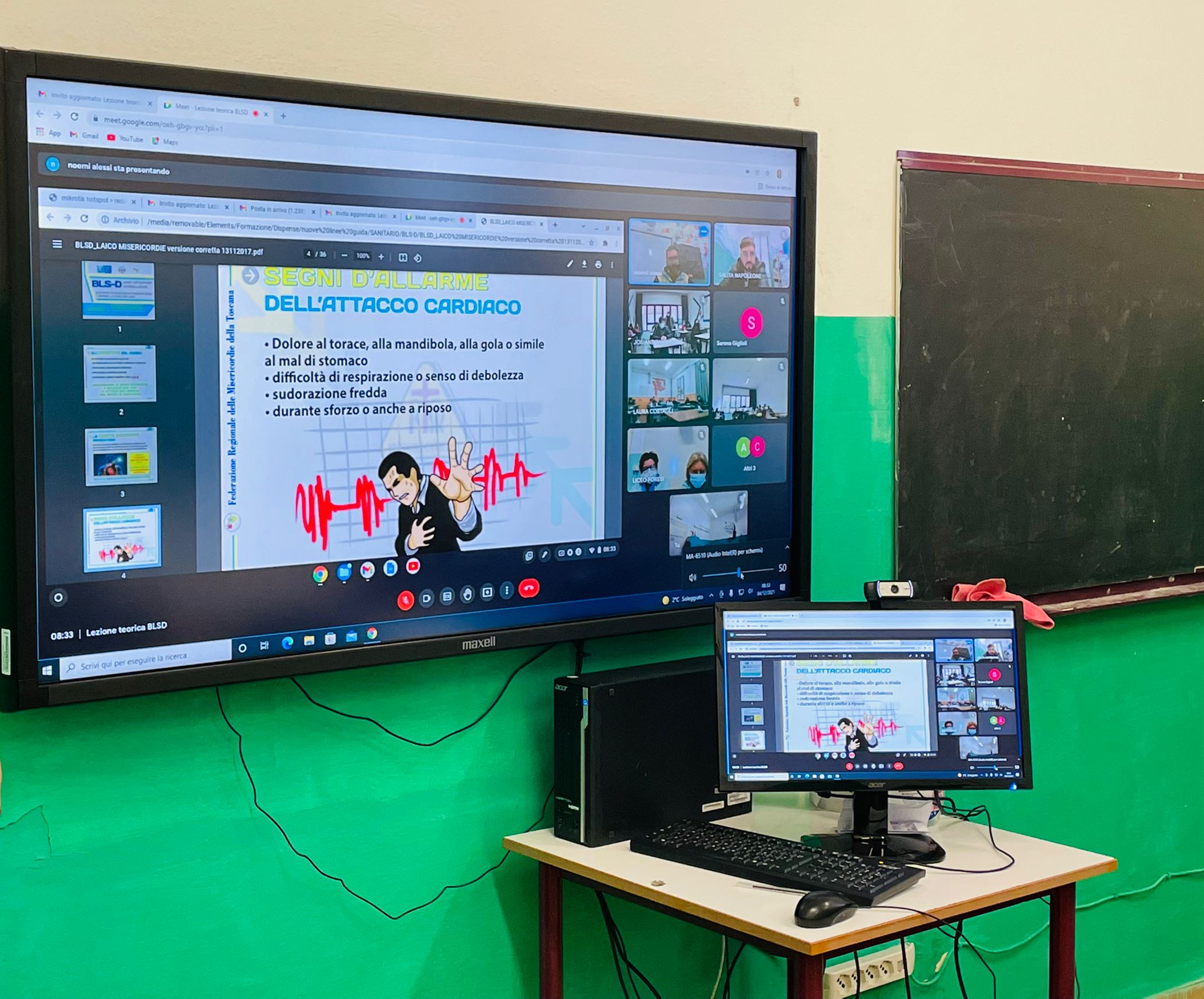 Lo scopo del BLS-D (Basic Life Support-Defibrillation, sostegno delle funzioni vitali con defibrillazione) è quello di riconoscere prontamente la compromissione delle funzioni vitali e di sostenere la respirazione e la circolazione attraverso il massaggio cardiaco esterno, fino all’arrivo degli operatori sanitari. I formatori della Misericordia di Portoferraio hanno tenuto una lezione teorico-pratica a termine della quale i ragazzi hanno potuto mettere in pratica le conoscenze acquisite, conseguendo la certificazione di “esecutori” all’uso del BLS-D. “Si tratta di un’importante iniziativa che, oltre a promuovere elementi di educazione sanitaria, integra l’offerta formativa del Foresi nell’ambito dei PCTO” ha commentato la Dirigente Scolastica prof.ssa Alessandra Rando, sottolineando il ruolo formativo di un importante ente del territorio come la Misericordia di Portoferraio.