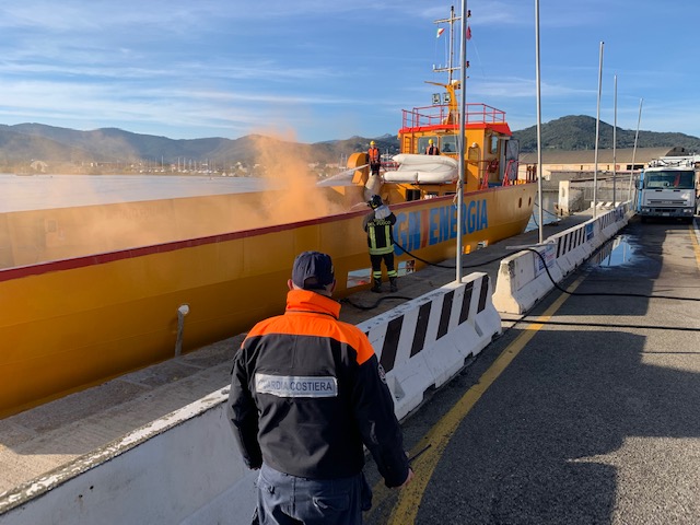 In questo contesto, oltre ai militari della Guardia costiera sono intervenuti per le attività di spegnimento dell’incendio i mezzi dei Vigili del Fuoco del Comando provinciale di Livorno, nonché la locale Corporazione dei Piloti ed il Gruppo ormeggiatori che hanno provveduto rispettivamente a deviare il traffico dei traghetti di linea e al posizionamento delle panne galleggianti di contenimento.