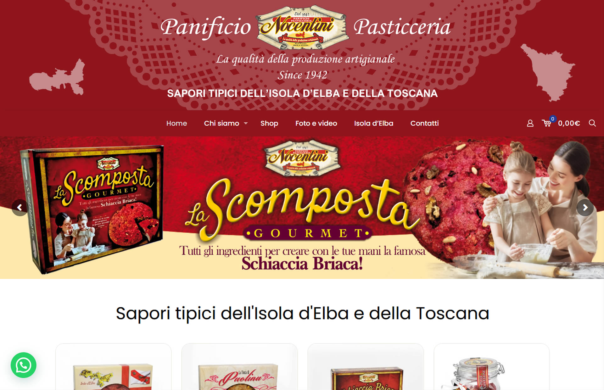 È on – line il nuovo sito dedicato alla vendita dei prodotti tipici dell’Elba del Panificio Pasticceria Nocentini. www.panificionocentini.com. Quindi sarà possibile acquistare su internet tutte le specialità locali preparate dal panificio. Basta qualche click e ciò che desiderate vi verrà recapitato direttamente a casa. L’ E – commerce è quindi la novità di fine anno proposta dal gruppo, che sta incrementando la produzione e dove possibile, anche la qualità delle proposte. Al momento sul sito sono disponibili 13 referenze. Le tre torte, Napoleone, Paolina e Cosimo De Medici. Le Palle di Napoleone Gourmet, la Schiaccia Briaca Gourmet e la Schiacciunta Gourmet, i Cantucci alle mandorle, la Scomposta Gourmet e il Pane del pescatore. Poi ancora, Biscottini dell’Elba, Schiaccia Briaca e Pan Briaco e infine il Box Gourmet che contiene tre prodotti acquistabili con uno sconto importante. La pagina di benvenuto è accattivante e ricca di foto che richiamano anche le tradizioni dell’Isola. Ben in evidenza il carrello per gli acquisti e una Chat WhatsApp dove in tempo reale si possono porre quesiti e ottenere risposte. Un’operazione di marketing anche territoriale, perché oltre a promuovere l’azienda nel mondo attraverso la rete, questo permette di far conoscere l’isola d’Elba e tutte le sue peculiarità. Il sito è stato realizzato dall’azienda elbana Infoelba.