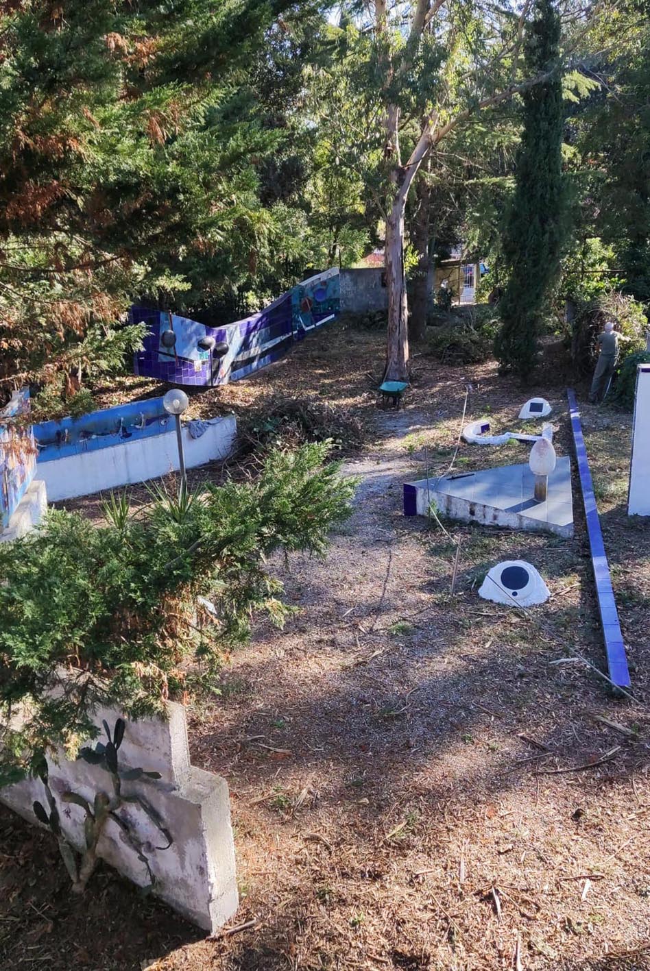 Non poteva sfuggire all’invasione l’Open Air Museum Italo Bolano, ora chiuso per riposo stagionale, dopo che un gruppo di valorosi volontari in autunno ne aveva completato la pulizia (iniziata nella scorsa estate dopo una forzata chiusura a causa della malattia di Italo Bolano) estirpando edera invasiva, e potando gli arbusti cresciuti a dismisura.
