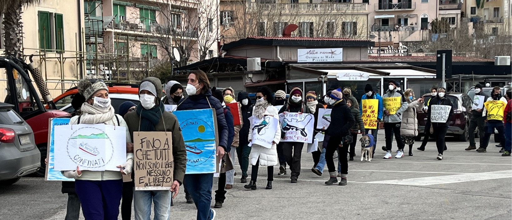 Un centinaio di persone ha partecipato nella mattinata di ieri alla protesta organizzata, sulle banchine de porto di Portoferraio, dal comitato Libera Scelta Elba per protestare contro il green pass obbligatorio sui mezzi di trasporto e in particolare sui traghetti, nonostante la deroga arrivata dal Ministero Speranza. Il corteo ha sfilato più volte sulle vie e le banchine portuali, scandito dal suono di un tamburo e accompagnato da cartelli contro la politica sanitaria del governo. La deroga concesso dal ministero secondo i manifestanti serve a poco e va comunque a creare un disagio per tutti i lavoratori . “Non ci sono solo problemi sanitari e scolastici – fa presente Mauro Morosi – una deroga è obbligatoria , siamo una piccola isola e in questo modo viene a mancare la continuità territoriale e questo è un danno per tutti i cittadini che siano vaccinati o non vaccinati. Il nostro comitato non fa distinzioni”.Libera Scelta parla di un approccio logico alla situazione che stiamo vivendo , contestando i provvedimenti che vengono emessi dal governo centrale in cui viene fatta “una discriminazione tra cittadini sulle navi e gli altri mezzi pubblici” E questo secondo loro senza “una motivazione scientifica” come ha specificato un altro portavoce del comitato, Graziano Rinaldi. Da qui la protesta organizzata nella giornata di oggi 10 gennaio, in contemporanea con le altre isole minori italiane. Specificando che la manifestazione organizzata non si basa sulla questione di essere a favore o contrari ai vaccini “ Non siamo in questa discissione – ha confermato Rinaldi – siamo tutti potenziali portatori i Covid 19 e ormai questo è di dominio pubblico. Per cui non capiamo questi provvedimenti. Si parla di uscire dall’Elba per motivi di salute o di studio. Ma se invece si deve andare a trovare una persona cara? O per qualunque motivazione di amicizia o parentela?”. I manifestanti di Libera Scelta vogliono essere liberi di prendere le rispettive decisioni in merito al proprio corpo e non accettano le limitazioni derivate dalla non vaccinazione, un provvedimento che considerano senza logica. Punto centrale di questa libertà decisionale è la continuità territoriale . Traghetti e mobilità sono uno dei problemi peculiari delle isole con i disagi che questo comporta, se non c’è la possibilità di usufruire del trasporto marittimo. “Il problema principale è proprio quello dell’insularità – secondo Walter Tripicchio – i cui problemi potrebbero essere risolti con una legislazione specifica per le isole minori.” Il comitato Libera Scelta Elba in questa settimana creerà una rete di assistenza che si occuperà di portare generi di prima necessità e farmaci alle persone in quarantena