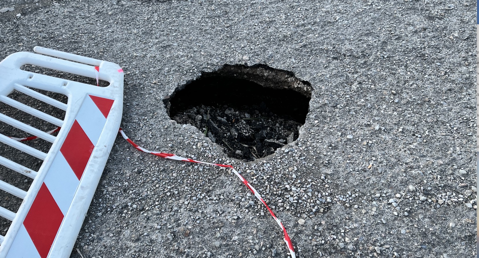Bisogna fare attenzione in via del Carburo (poco prima del Condominio Manetti) in quanto si è formata una piccola voragine del diametro circa un metro. Prima della Befana – racconta un abitante della zona- una signora che abita poco distante da dove si è aperto il buco, ha fatto presente quanto avvenuto, agli uffici competenti del comune di Portoferraio. Nella giornata di sabato 8 gennaio, la buca, si è piano piano allargata facendo vedere che sotto il manto stradale ceduto c’era del vuoto. La stessa signora ha avvisato il corpo di Polizia Municipale che è intervenuto immediatamente, facendo intervenire una ditta privata che ha intanto provveduto a mettere in “sicurezza la zona con due transenne e del fettucciato. Il forte vento della giornata di domenica ha però fatto cadere le protezioni e la zona diventa molto pericolosa soprattutto di sera quando l’illuminazione è davvero poca. Rimane il problema che sempre a detta delle persone che abitano in zona dovrebbe essere risolto a breve.