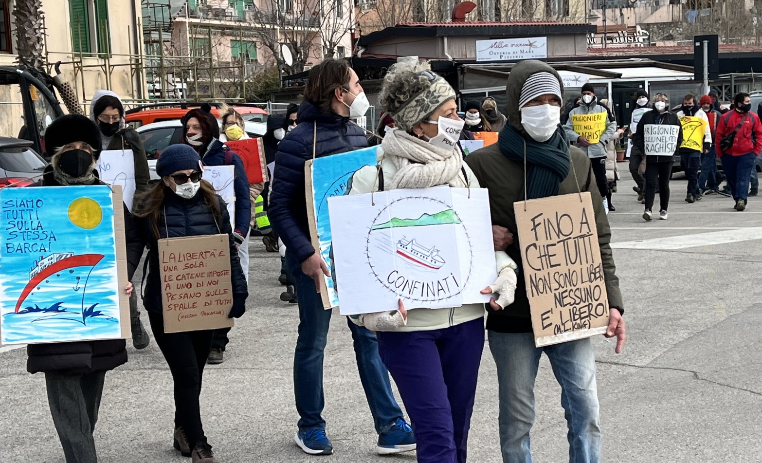 Il comitato Libera scelta Elba ha organizzato un presidio sul porto di Portoferraio di persone vaccinate e non vaccinate per contestare la “confusa e inetta politica sanitaria del Governo Draghi”. Dopo la diffida inviata alle compagnie di navigazione, alle Capitanerie di porto, ai carabinieri, alle polizie di Stato e municipali e all’Ufficio territoriale di Governo, ecco l’annunciato presidio. Circa 100 persone attrezzate con cartelli di protesta, hanno sfilato nelle vie del porto di Portoferraio. Critiche alla deroga e all’incertezza del diritto sono emerse nella conferenza stampa organizzata all’aperto. Gli organizzatori hanno anche fatto sapere che è gia operativa una squadra di “Libera Scelta” che sta aiutando le persone in quarantena portando la spesa e medicinali a casa vista l’impossibilità ad uscire.