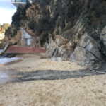 Sulla spiaggia, la sostanza grigia si è solidificata, a monte, formando una sorta di ‘massetto’ di qualche centimetro di spessore, che può far cadere o ferire chi cammina a piedi nudi sulla sabbia, mentre verso la riva, a causa delle forti onde di questi giorni, parti del materiale alieno sono purtroppo già entrate in mare.