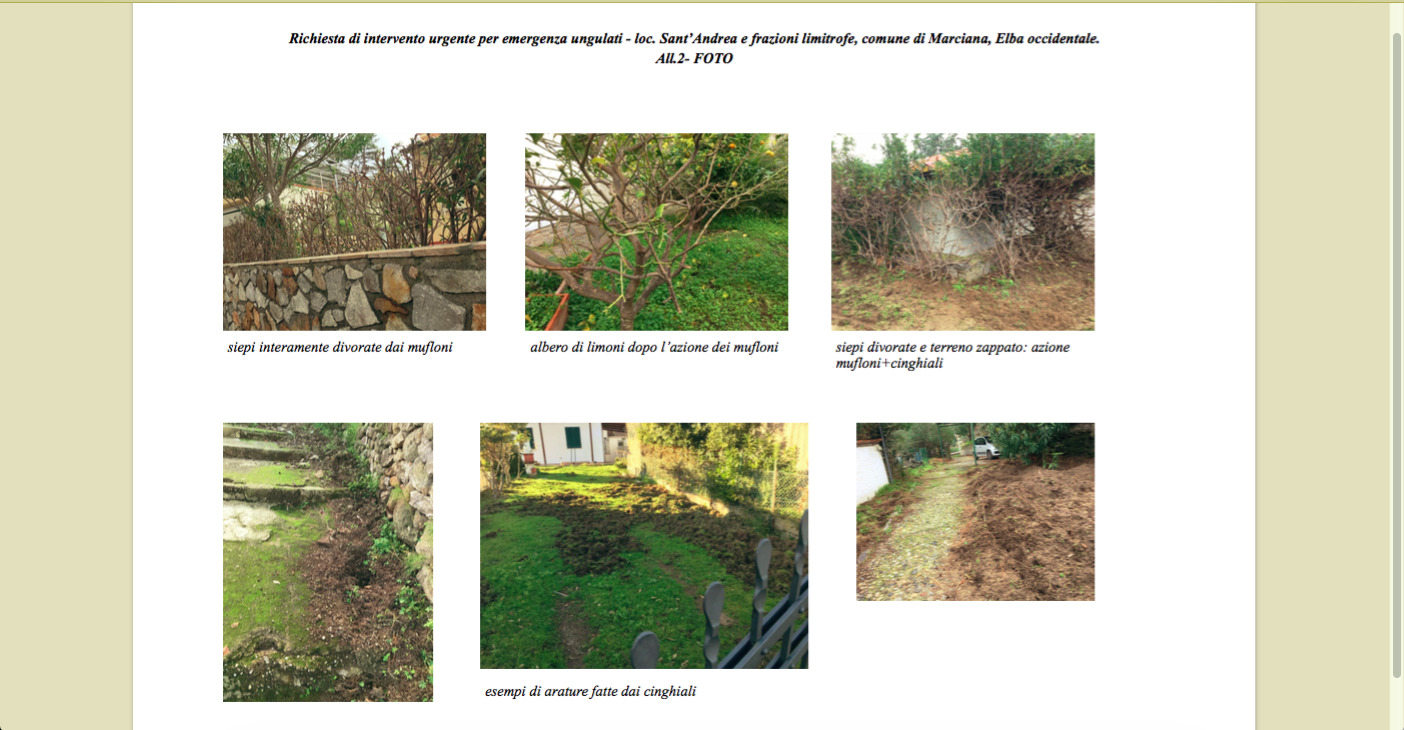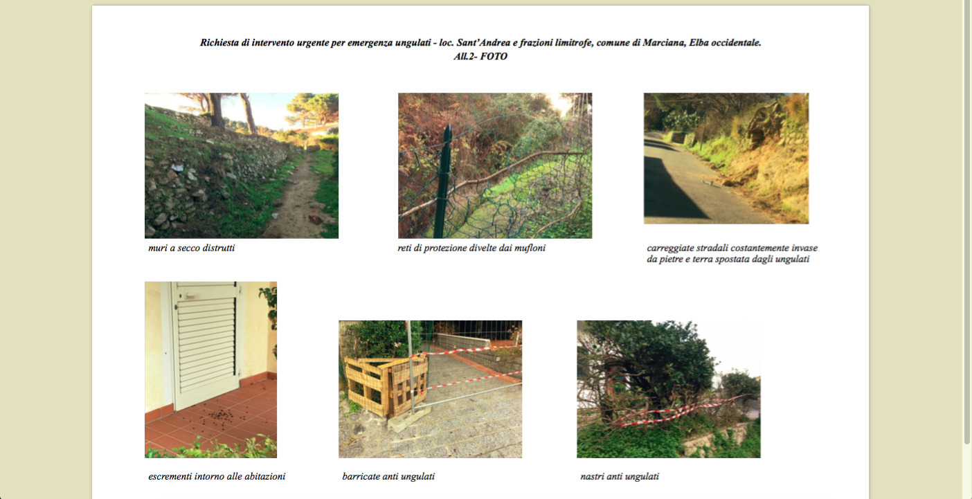 Richiesta di intervento urgente per emergenza ungulati – loc. Sant’Andrea e frazioni limitrofe, comune di Marciana, Elba occidentale.