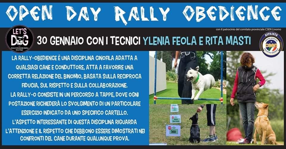 Il 30 gennaio l’Associazione Let’s Dog organizza un open day gratuito di rally obedience.