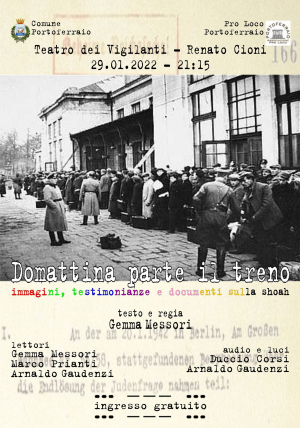In occasione della Giornata della Memoria, la Pro Loco ed il Comune di Portoferraio organizzano uno spettacolo che andrà in scena il 29 gennaio alle ore 21,15 al Teatro dei Vigilanti – Renato Cioni a Portoferraio.