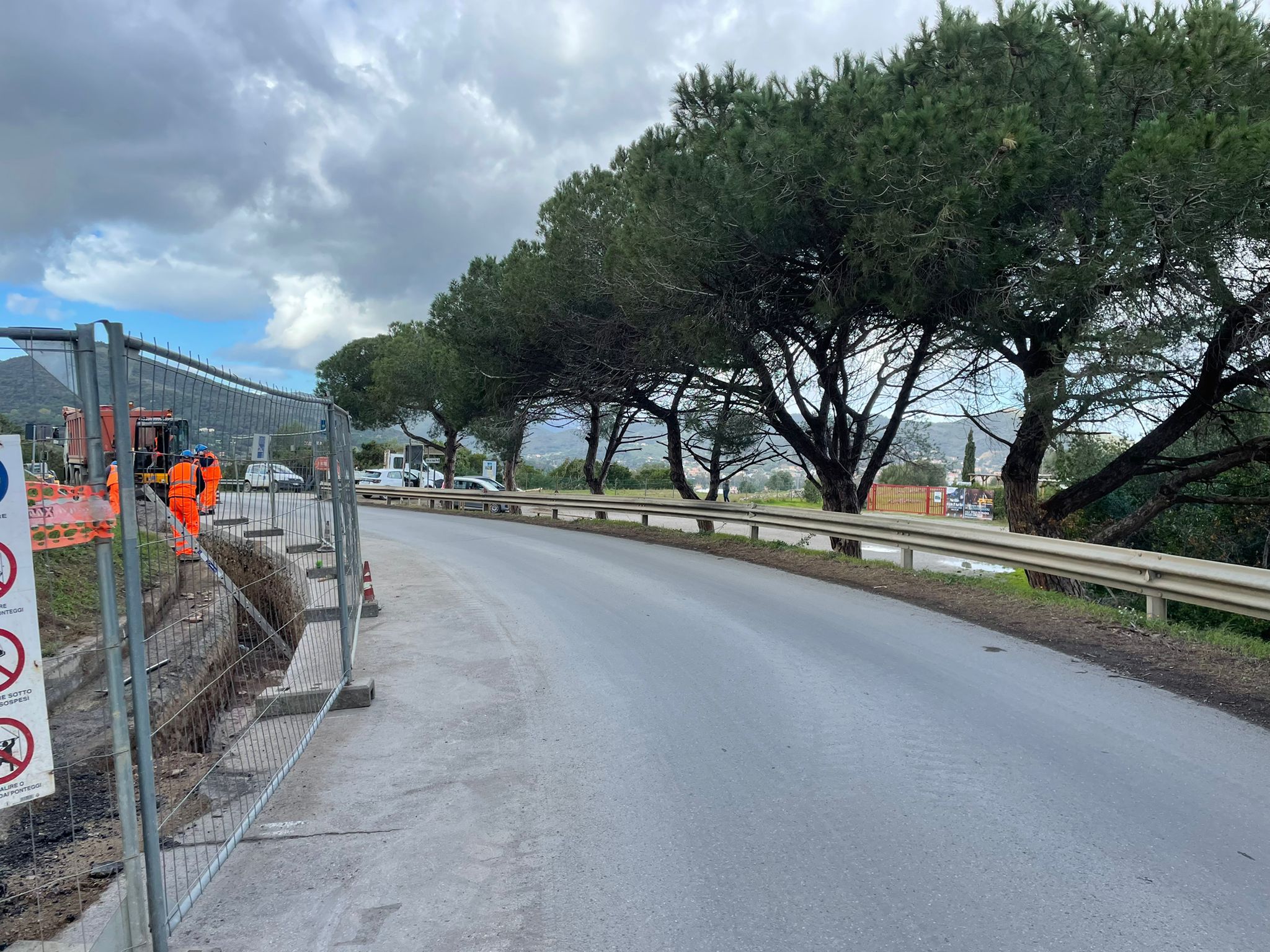 Si ricorda che la strada, costruita in anni recenti, ha tagliato in due il complesso delle Grotte, lasciando isolata la cisterna superiore dalla villa sottostante; a suo tempo il funzionario della Soprintendenza dott. Giorgio Monaco che diede avvio agi scavi della villa romana nel 1960 e li proseguì fino al 1972, fece dei saggi archeologici nell’area oggi adibita a parcheggio ma non vi rinvenne strutture; adesso, grazie all’archeologia preventiva prevista per i lavori pubblici, è stato possibile aggiungere nuove informazioni relativamente al complesso delle Grotte, oggetto anche di recenti scavi in concessione da parte dell’università di Siena.