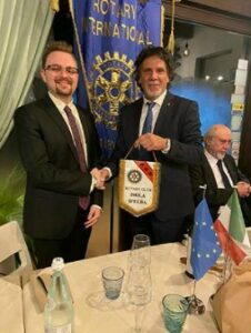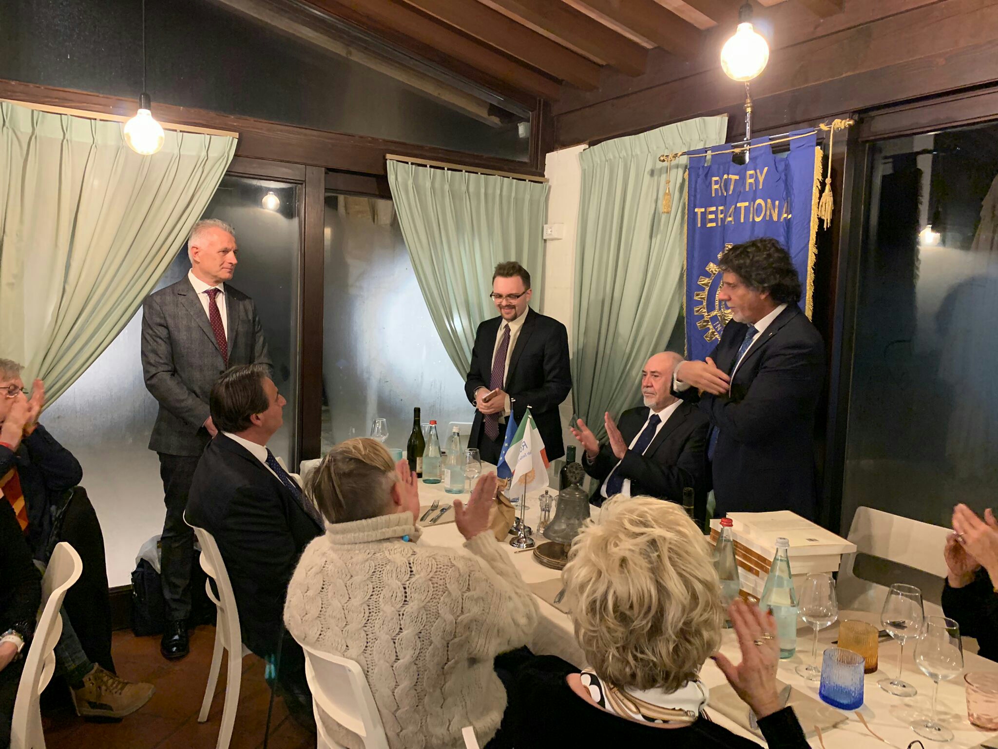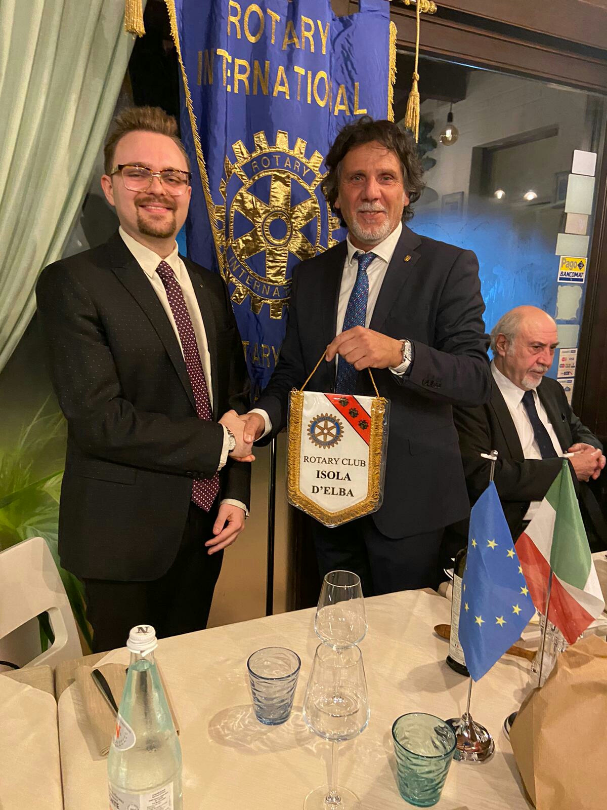 Di poi, il presidente Sergio Cavaliere ha invitato Mattia a leggere il giuramento e gli ha donato la spilla rotariana e il gagliardetto del Club elbano. Quindi, dopo avergli posto le sue personali congratulazioni, ha lasciato che anche tutti i presenti gli esternassero il piacere di averlo accolto tra le loro fila.