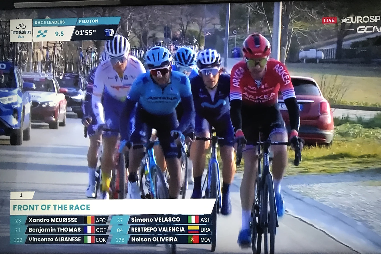 Per poco non riusciva il colpaccio a Simone Velasco, corridore elbano della Astana, nella quinta tappa della Tirreno-Adriatico, la la Sefro (Macerata)-Fermo, di 155 chilometri. Velasco ha tentato più volte l’assolo, restando lievemente staccato nel finale di tappa dietro al vincitore, il francese Warren Barguil e al belga Xandro Meurisse. Nella classifica di tappa alle spalle di Velasco c’erano campioni del calibro di Tadej Pogacar e Remco Evenepoel. La Tirreno-Adriatico, classica gara a tappe di inizio stagione che vede al via tutti i campioni del circuito Pro World Tour, si concluderà domenica a San Benedetto del Tronto.