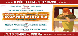 Al cinema Nello Santi di Portoferraio in programmazione per il ciclo “Cinema d’Autore”, è in programmazione il film“ Scompartimento n.6” vincitore del gran premio speciale della giuria al Festival di Cannes. Il film verrà proiettato Giovedì 24 Marzo alle ore 21:30. Al cinema Nello Santi di Portoferraio in programmazione per il ciclo “Cinema d’Autore”, è in programmazione il film“ Scompartimento n.6” vincitore del gran premio speciale della giuria al Festival di Cannes. Il film verrà proiettato Giovedì 24 Marzo alle ore 21:30. Un film nostalgico dal tocco lieve. Mentre un treno avanza verso il circolo artico, due estranei condividono un viaggio che cambierà il loro punto di vista sulla vita. Il film è stato premiato al Festival di Cannes, ha ottenuto 1 candidatura a Golden Globes, ha ottenuto 3 candidature agli European Film Awards, ha ottenuto 1 candidatura a Cesar, ha ottenuto 1 candidatura a Satellite Awards, ha ottenuto 1 candidatura a British Independent, ha ottenuto 1 candidatura a Spirit Awards,