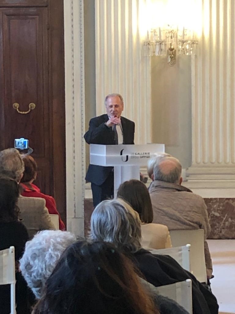 “Sono qui – ha detto il sindaco Zini nel suo intervento di saluto davanti ad un attento uditorio – per rappresentare la città di Portoferraio e per ringraziare il direttore degli Uffizi Eike Schmidt che ho conosciuto la scorsa estate in un’occasione molto importante, quando a Portoferraio abbiamo ospitato un’iniziativa degli ‘Uffizi Diffusi’. Da lì è partita una collaborazione con le Gallerie e con il direttore che vorremmo, ovviamente, andasse avanti. Essere qui stamani è un grande orgoglio per noi, per la nostra città e per la nostra isola. Grazie ancora per questa opportunità”.