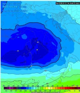 Un fine settimana che ad aprile non ti aspetteresti mai. Dalla seconda parte della giornata di venerdì 1 aprile in arrivo forte libeccio su Arcipelago settentrionale e meridionale con raffiche anche sui 100km/h a nord e a Capraia, con altezza d ‘onda significativa di 5-6 metri a nord di Capraia, tra 1,5/2 metri tra Elba e Pianosa e fino a 3 metri all’ altezza del Giglio; attenzione dunque alle ripercussioni sui trasporti marittimi. Il libeccio durante la giornata sarà sempre più freddo per l’ingresso in grande stile di aria fredda in quota dalla serata con un’isoterma di – 34 a circa 5000 metri nella giornata di sabato, la classica “rodanata” che mancava da anni. Per la cronaca, Rodanata è un termine che spesso viene usato sui forum di meteorologia per evidenziare una configurazione che è sempre più rara con il passare degli anni.