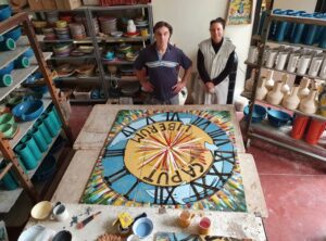 foto 1: La pittrice Roberta Paci e il Titolare della ceramiche Tombelli