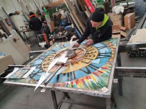 foto 2: Lorenzo Maniaci restaura l’acciaio della struttura