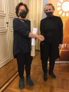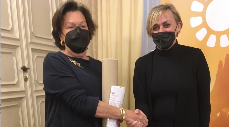 nella foto: Patrizia Lupi, direttrice della Fondazione Isola d’Elba, riceve l’attestato dalla Vicepresidente della Fondazione Livorno, Cinzia Pagni
