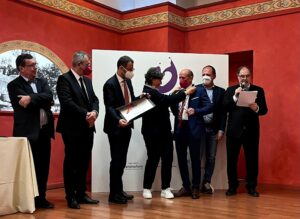 La vicepresidente della Regione Toscana e Assessore all’Agricoltura Stefania Saccardi ha consegnato ad Arrighi la Medaglia di Cangrande, insieme al Ministro Stefano Patuanelli e al Consigliere Regionale Marco Landi.