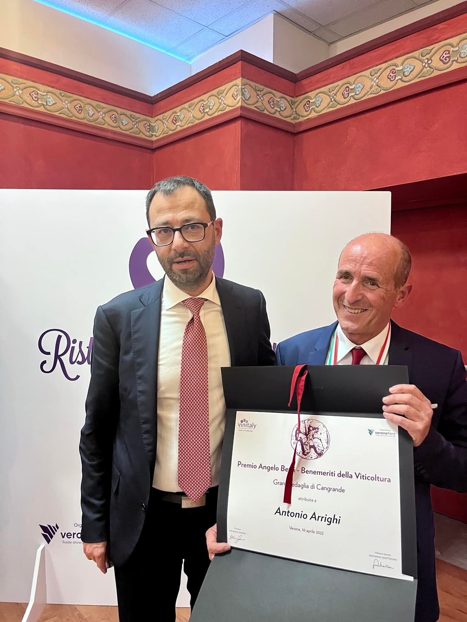 Ad Antonio Arrighi, infatti, è stato assegnato il premio Angelo Betti per la Regione Toscana come Benemerito della Viticoltura al Vinitaly 2022.