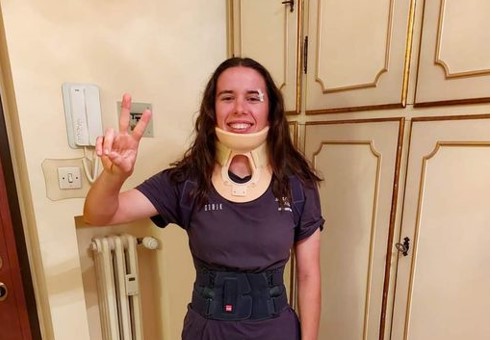 ‘In seguito ad una brutta caduta sul percorso degli @internazionali di Capoliveri – scrive Martina – ho riportato una frattura della colonna vertebrale. Oggi ho fatto i primi passi dopo 3 giorni completamente a letto.