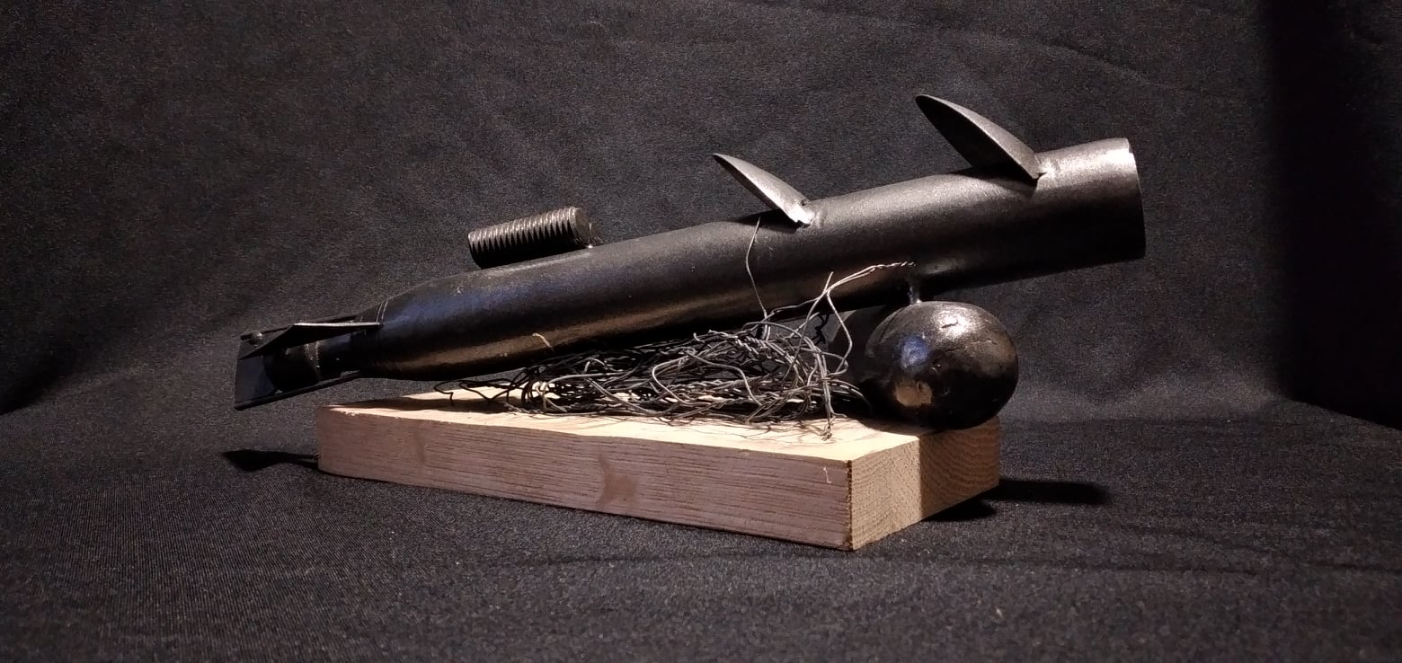 Si è partiti da un bozzetto del Maestro d’arte Luca Polesi che nella sua “Baracca Magica” modifica, assembla e salda materiali di recupero per creare sculture immaginifiche ma nel contempo fortemente agganciate alla realtà. Il modellino in scala del Siluro a Lenta Corsa, “inventato” utilizzando elettrodi, cucchiai, coltelli, telaio di bicicletta e parti di lavatrice, è incredibile per la sua rassomiglianza con l’originale.