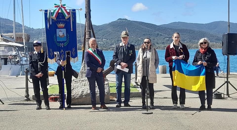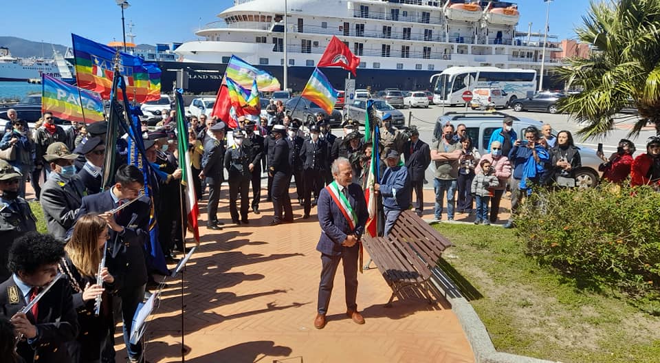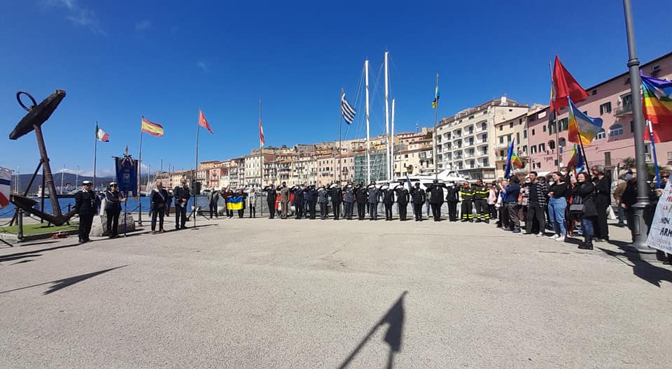 La celebrazione di Portoferraio per il 25 aprile si è svolta in tre momenti. Il primo sul molo Elba dove autorità civili e militari insieme alle associazioni hanno celebrato la ricorrenza accompagnati dalle note della filarmonica Pietri e da un breve ringraziamento da parte della comunità Ucraina all’Elba per i “ponti di pace” che l’Elba sta costruendo per la loro nazione martoriata dalla guerra. Ecco le parole del sindaco di Portoferraio, Angelo Zini: