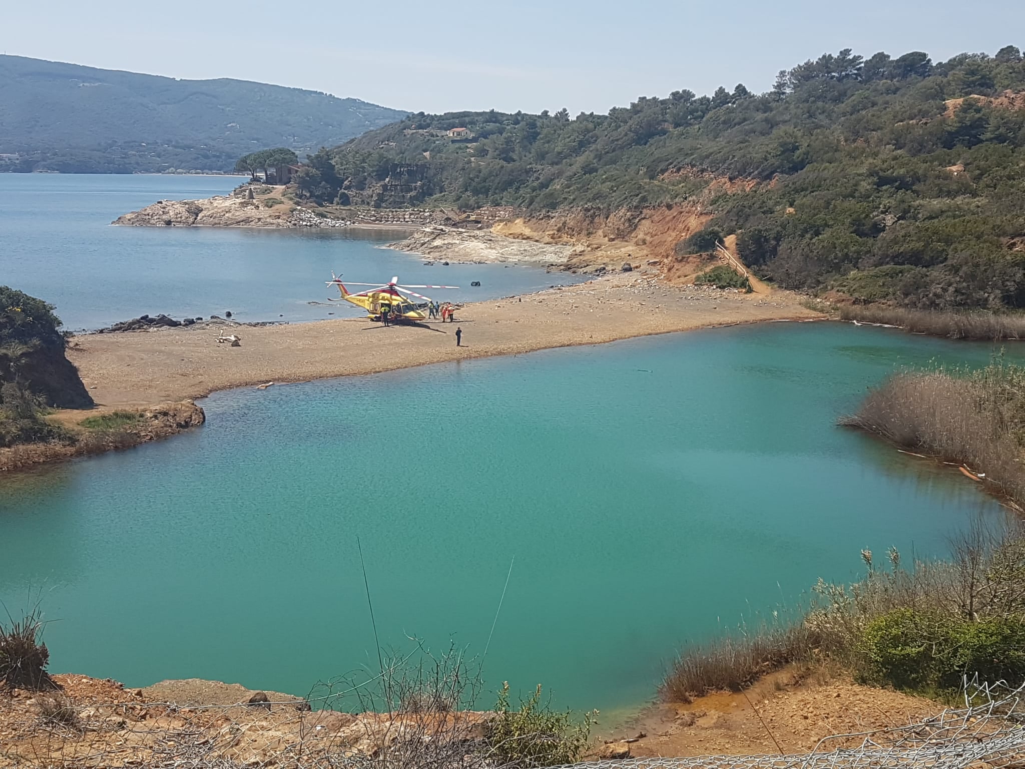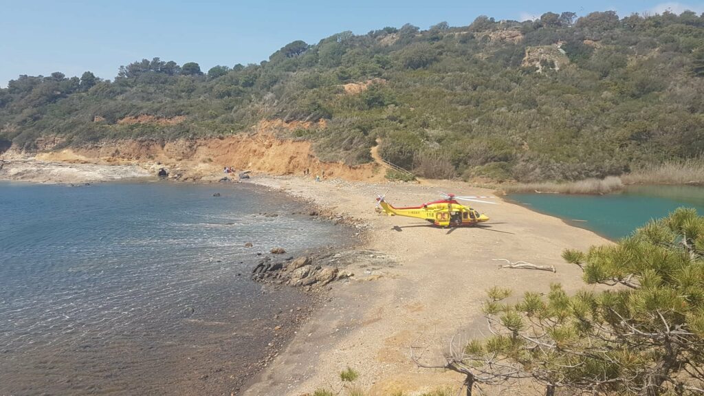 Intervento primario dell’elisoccorso Pegaso 2 del 118 nei pressi del laghetto di Terranera, nel territorio del comune di Porto Azzurro. Un gruppo di ciclisti in mountain bike stava percorrendo un sentiero panoramico quando il biker che era in testa al gruppo, un 54enne trentino, ha perso il controllo sfondando la staccionata del sentiero e volando letteralmente sulla scogliera, circa 10 metri più in basso.