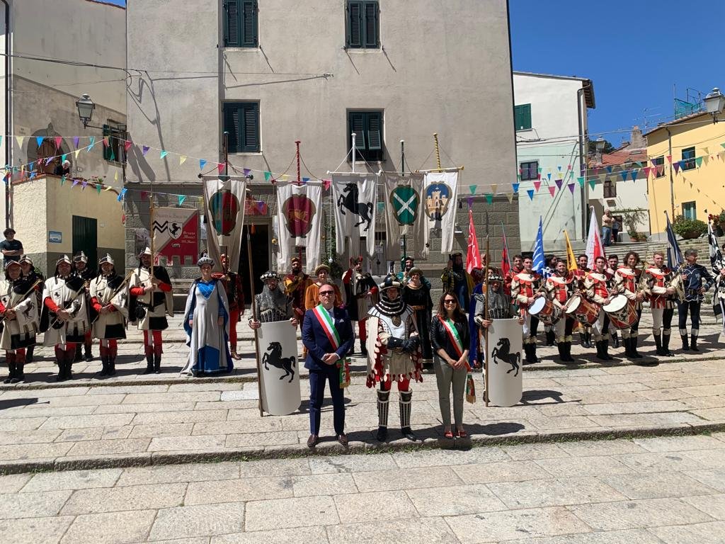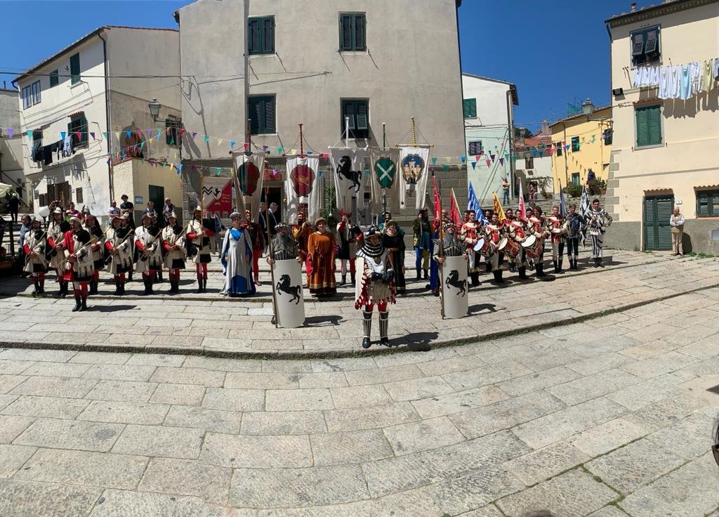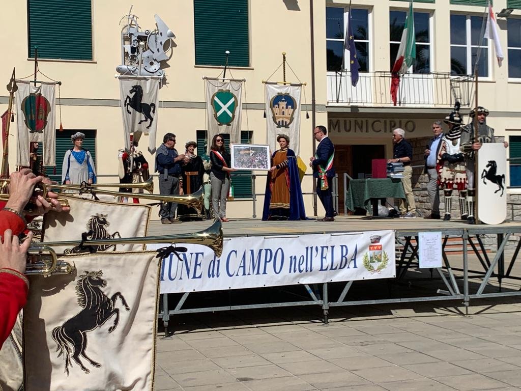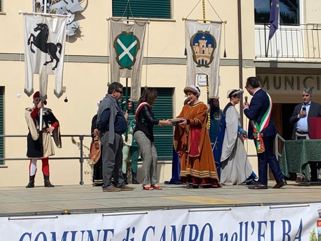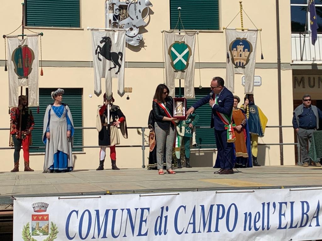 Nella giornata di sabato 14 maggio, si è svolto l’incontro tra le amministrazioni comunali di Arezzo e Campo nell’Elba. Nell’occasione, la delegazione aretina, guidata da Simon Pietro Palazzo, ha fatto omaggio al sindaco di Campo nell’Elba, Davide Montauti, insieme ad altri doni evocativi della manifestazione, di un mirabile manufatto realizzato dal Maestro Francesco Conti e raffigurante, con varie simbologie, la città di Arezzo, la sua Giostra e il suo legame con Giuseppe Pietri: a seguire, il corteo della Giostra del Saracino con l’esibizione di Musici e Sbandieratori ha sfilato per le vie di San Piero in Campo per poi trasferirsi a Marina di Campo.