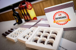 I ragazzi dell’Isola d’Elba non solo hanno avuto l’idea di sostituire i liquori all’interno dei cioccolatini con la birra, ma il grande merito di aver creato una partnership tra due aziende locali. Per produrre la loro idea, gli studenti della 4° Turistico e la 4° B Amministrazione Finanza e Marketing, guidati dai professori di tedesco Davide Coviello e Manuela Mereu, hanno lavorato con Birra dell’Elba e la Maître Chocolatier Paola Bertani di Magie Dolce e Salato. I cioccolatini si chiamano BierRunde, e per la loro vendita sul mercato i vincitori hanno creato un simpatico spot video – due ragazzi sulla panchina che interpretano la famosa scena di Forrest Gump – e lo slogan “Ich bin schokbiert” dove la parola tedesca schockiert (sotto choc) diventa un neologismo nato dall’unione tra Schokolade e Bier.