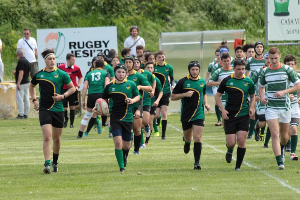 Nel corso del primo tempo i neroverdi segnano altre quattro mete, subendo però una meta in un calo di concentrazione.