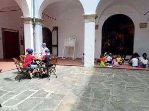 Per le iniziative proposte è stato scelto dalla Regione Toscana, il tema del dialogo e della pace. Il Comune di Portoferraio ha aderito all’iniziativa organizzando delle attività speciali riservate alle scuole primarie della città, che hanno avuto luogo alla Pinacoteca Foresiana nei giorni 9 e 27 aprile. Le attività sono state realizzate dall’associazione Opificio LiberArti in collaborazione con l‘assessorato alla cultura e all’istruzione e con il Sistema Museale dell‘Arcipelago Toscano. I giovani studenti, hanno partecipato ad alcune “cacce all’indizio” strutturate sul percorso museale, ascoltando le audio guide dedicate ad alcuni ritratti custoditi nella collezione realizzate nell’ambito di un progetto di accessibilità museale di Smart, dipingendo una bandiera della pace dedicata al museo e realizzando un lapbook dedicato a Mago Chiò, un bizzarro personaggio vissuto a Portoferraio alla fine dell’800 era solito scalare fortezze e campanili. I bambini hanno potuto sperimentare la didattica outdoor all‘interno di un edificio storico del capoluogo isolano, apprezzando non solo le ricchezze culturali presenti nel luogo, ma anche una forma di apprendimento che abbatte i muri fisici dello spazio-aula. Hanno infatti potuto sfruttare il nuovo allestimento del chiostro De Laugier per le attività laboratoriali legate alla costruzione del Lapbook e si sono improvvisati guide illustrando ai turisti che stavano visitando quei luoghi le gigantografie esposte che raccontano la storia e le tradizioni della nostra città. Scuola, territorio e cultura si sono, dunque, intrecciate, per rendere l‘apprendimento più bello, coinvolgente ed educativo, nella scoperta del bello.
