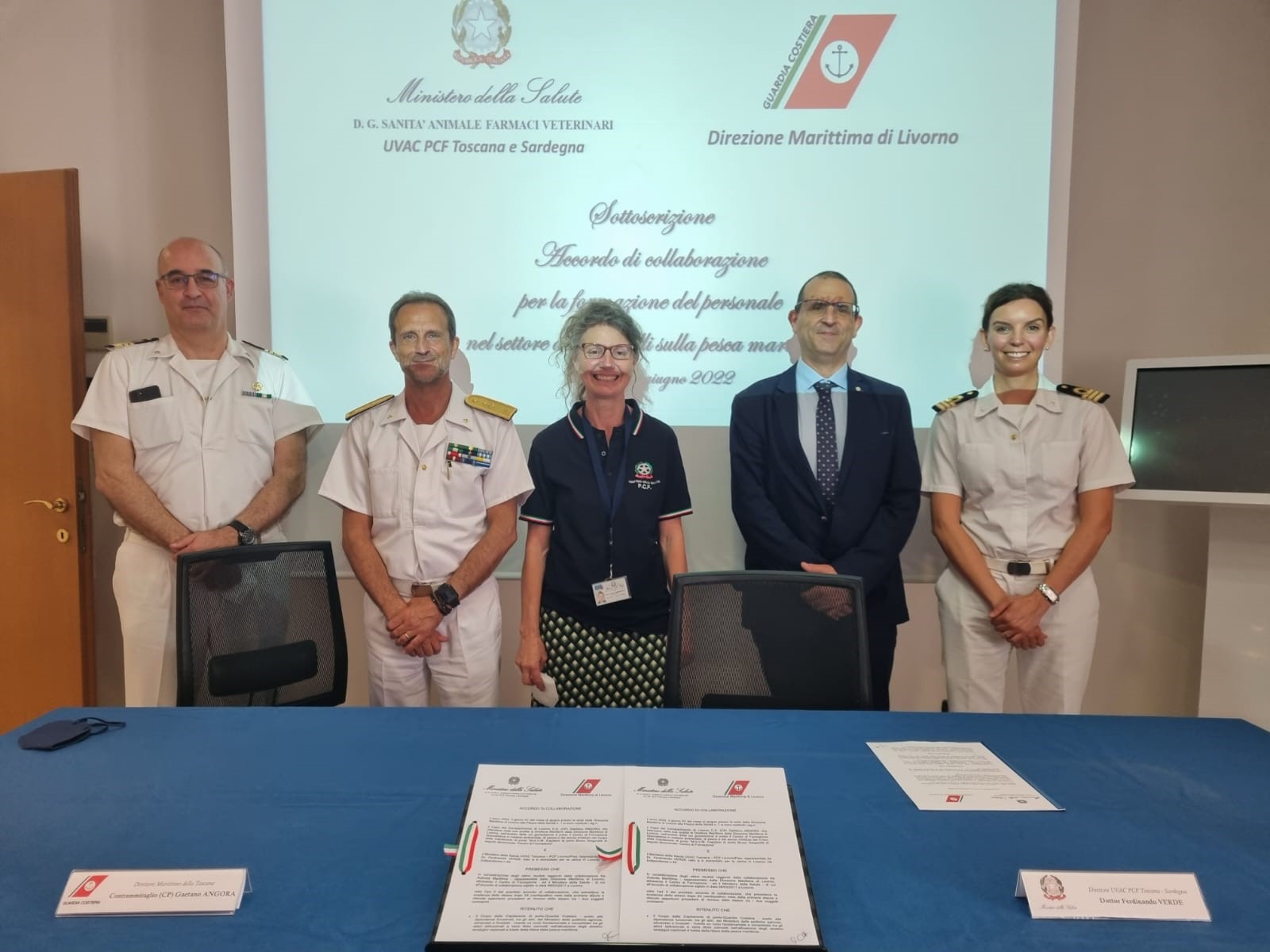Sottoscritto martedì mattina nella Sala Mazzinghi della Capitaneria di porto di Livorno l’accordo di collaborazione che consolida la già sperimentata sinergia tra la Direzione Marittima della Toscana e l’UVAC/PCF – Toscana Sardegna (Ufficio Veterinario per gli Adempimenti Comunitari / Posto di Controllo Frontaliero del Ministero della Salute) nelle attività formative e di controllo in materia di pesca marittima.