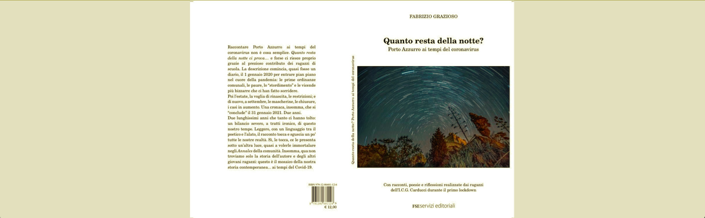 Dopo quattro mesi di lavoro e rifinitura, l’esperienza di Porto Azzurro alle prese con l’emergenza da Covid-19 è stata finalmente pubblicata (Federighi Edizioni). Quanto resta della notte, questo il titolo. L’iniziativa partì nel marzo del 2020, quando l’Amministrazione Comunale chiese ai ragazzi del nostro Istituto Comprensivo di scrivere un racconto o una poesia sul tempo che si stava vivendo in modo da crearne poi una raccolta. A distanza di due anni, questi elaborati – memorie insindacabili della classe adolescenziale – sono stati così resi pubblici ed integrati da una cronaca leggera ed esaustiva (scritta da Fabrizio Grazioso, che ne ha curato l’iniziativa).