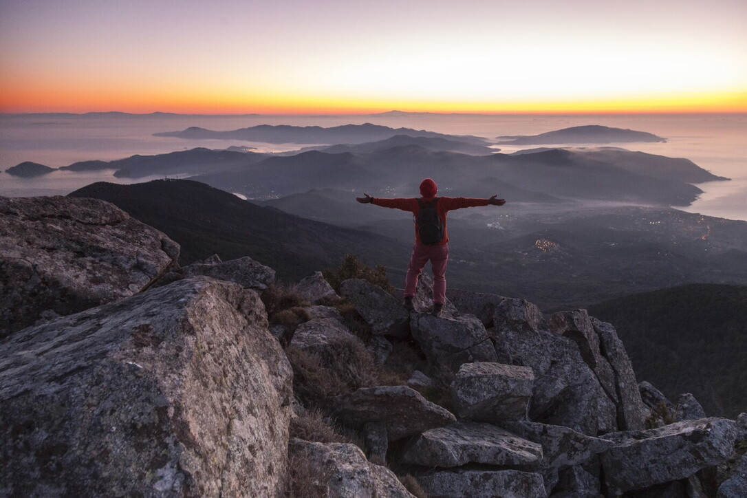 IL SOLE SOSPESO – Il “semaforo” di Campo alle Serre (edificio marittimo dismesso), situato sopra la località di Chiessi, si raggiunge attraverso un sentiero molto ripido e per questo di una certa difficoltà. Il percorso si snoda attraverso la profumata macchia mediterranea, sulla costa che si affaccia verso la Corsica. Il sentiero si arrampica tra i terrazzamenti di antichi vigneti abbandonati, dove un tempo si coltivavano le uve destinate a produrre l’Aleatico, fino al vecchio semaforo militare: costruito nel 1888 dalla Regia Marina nel luogo in cui sorgevano i resti di una preesistente postazione d’avvistamento, chiamata Guardia al Turco, per monitorare il traffico marittimo nel Canale di Corsica, è rimasto in funzione fino agli anni ’50. Tutte le sere, al tramonto, anche il sole sembra fermarsi per un momento di fronte a questa pagina di storia dell’Isola d’Elba, accendendo di rosso e arancione il paesaggio circostante e le splendide fioriture di Ginestra aspaltoides, specie endemica del Capanne.