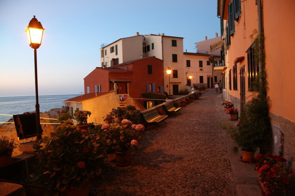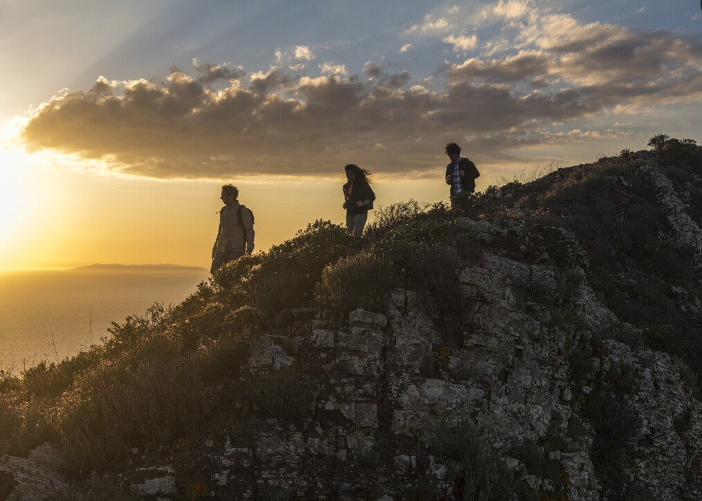 TRAMONTO SUL CALAMITA – Capoliveri è un colorato borgo che si affaccia sul mare, custode di un antico fascino quasi medievale fatto di vicoli stretti, casette color pastello e balconi fioriti. Parte da qui il sentiero che avanza sul Monte Calamita, una delle aree più selvagge e suggestive di tutta l’isola che ospita le uniche miniere sotterranee, oggi abbandonate, visitabili accompagnati dalle guide locali. Il panorama è assicurato: il percorso sembra rincorrere la linea della costa, con vista su baie e calette. Il profumo dell’erica e del rosmarino accompagna i viaggiatori nel cuore silenzioso delle pinete e a tratti sulla terra rossa delle miniere. Salendo, la luce calda del tramonto sarà una guida confortante fino al calare della notte quando, ormai giunti sulla cima, sotto un cielo stellato è possibile ammirare la luna che colora d’argento il mare.