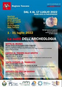 Come ogni anno, ritorna il consueto appuntamento culturale con le “Notti dell’Archeologia”: per tutto il mese di luglio, i musei, i parchi e le aree archeologiche della Toscana saranno protagonisti di eventi e di aperture serali straordinarie dedicate alla scoperta della storia più antica del nostro territorio.