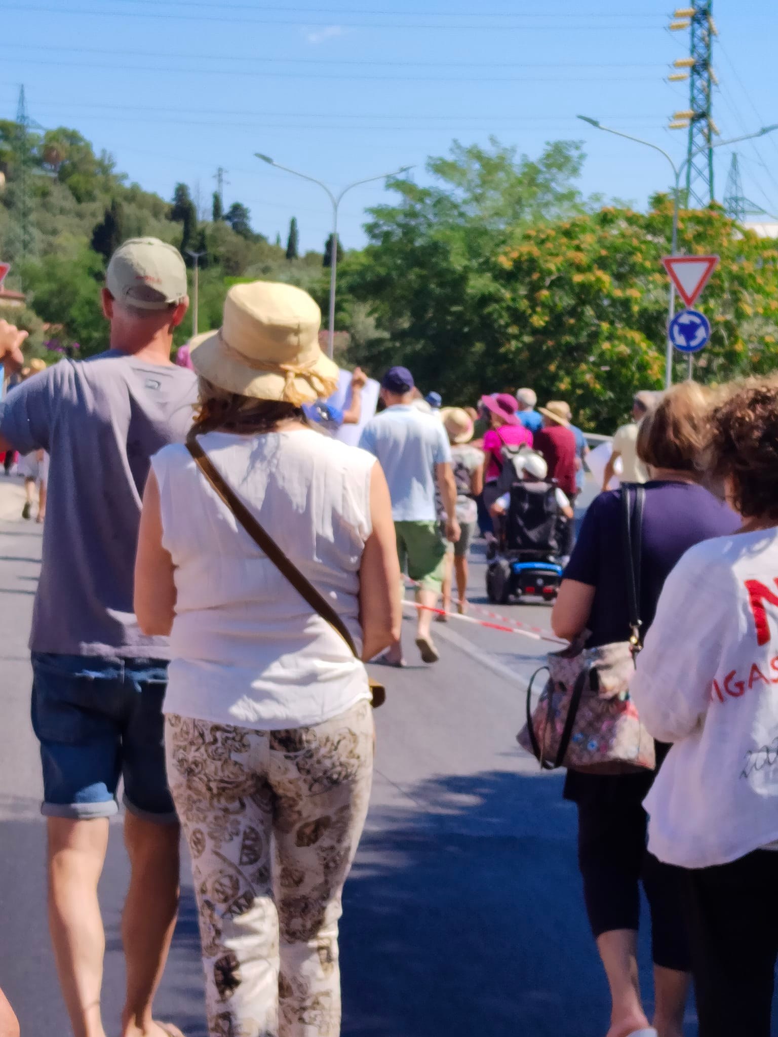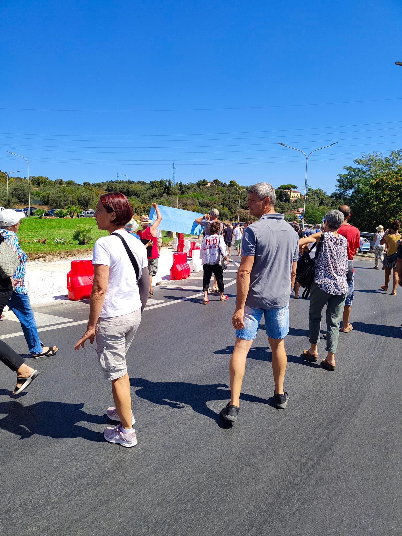 Sotto il sole cocente di sabato 9 luglio 2022, centinaia di persone si sono riversate sulla strada di accesso al porto di Piombino per protestare contro la decisione del Governo di installare una nave gasiera con funzioni di rigassificatore nel porto.