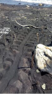 Le inconfondibili tracce di una tartaruga marina Caretta caretta che ha risalito una spiaggia per tentare di nidificare sono state trovate il 9 luglio da una coppia di turisti sulla sabbia nera delle Francesche, nel promontorio del Calamita, confermando che il Comune di Capoliveri è il più visitato e quello che ha più probabilità che si verifichino deposizioni di uova di tartarughe marine.