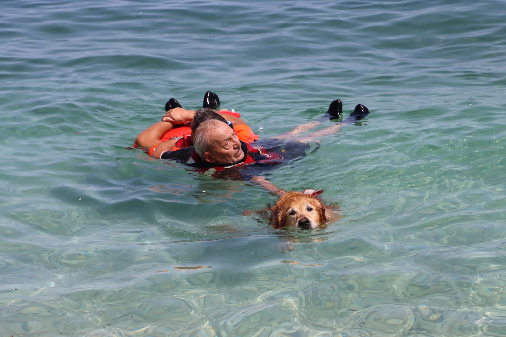 Alla fine della dimostrazione le nostre Unità Cinofile hanno interagito con i bambini e adulti nel provare a essere recuperati dal cane ed essere trainati a riva.