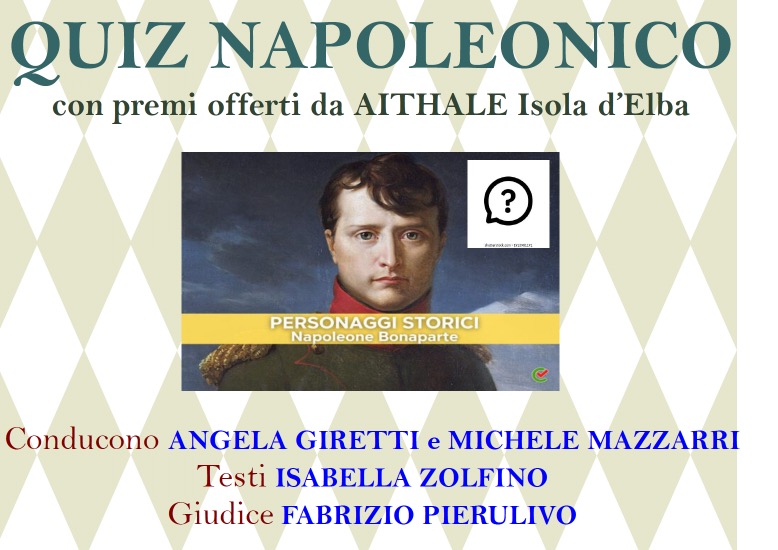 Il gioco verterà sulle conoscenze di base della vita di Napoleone all’Elba ed è aperto a tutti coloro che vorranno cimentarsi con la storia del grande Sovrano, per trascorrere una serata in allegria e leggerezza.