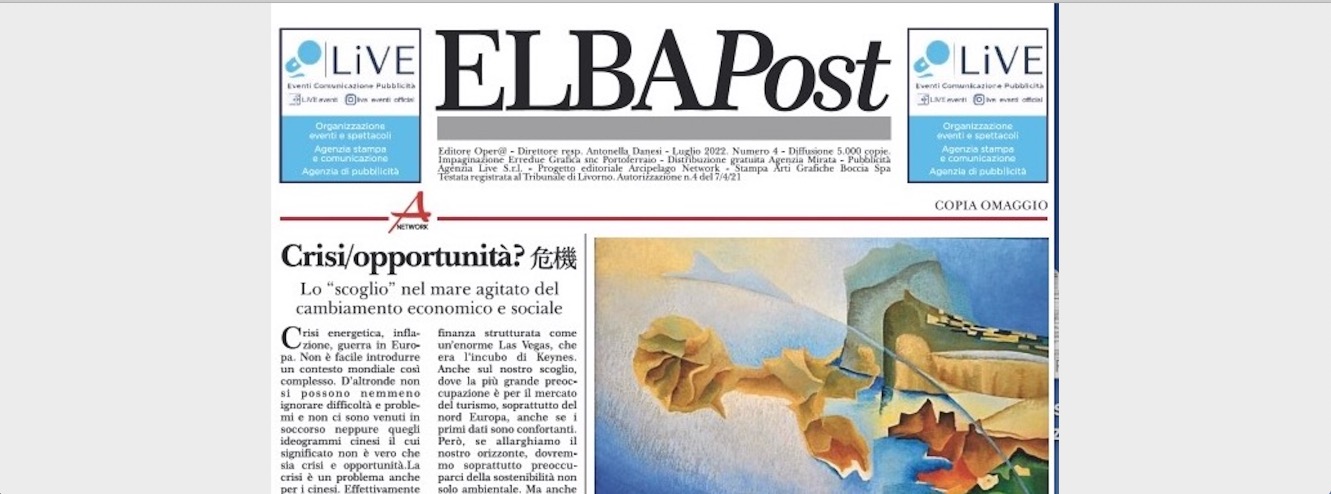 E’ in distribuzione gratuita da qualche giorno, “Elba Post” l’iniziativa editoriale di Arcipelago Network. Nel numero estivo, un editoriale che contestualizza il momento attuale non solo dell’Elba. Il titolo è eloquente: Crisi/Opportunità, lo Scoglio nel mare agitato del cambiamento economico e sociale. Un cammeo di Attilio Romita già direttore del TG1 che ricorda il suo affetto per l’isola e la sua gente che risale al 1983. Poi le energie alternative per la città medicea, il “mare interiore” di Cristina Sammarco e ancora mare che è l’elemento portante della pubblicazione. Non poteva mancare un articolo sul giovane rugbista elbano Ion Neculai che ha esordito nella Nazionale maggiore la cittadinanza onoraria a Bebe Vio. Un approfondimento su un mestiere affascinante lo trovate con “Comandare Maxi Yacht” poi ancora un ricordo personale di Alessandro Squarci con “La Motosilurante”. Sfogliando le pagine di “Elba Post”, la Fondazione Acqua dell’Elba si presenta al pubblico, un pensiero per Massimo Russo prematuramente scomparso e poi, il punto sul trasporto pubblico, gli autori in Vantina, l’approdo all’isola di chi fugge dalla guerra e per concludere i narratori dell’Arcipelago, l’importanza dell’isola per gli uccelli migratori e alcune pagine riservate alle informazioni di natura commerciale. Se non lo avete ancora ricevuto, lo riceverete a casa nelle prossime ore e potete trovarlo nelle edicole e nelle attività commerciali dell’Elba. Per leggerlo sul Web: https://www.elbaimprese.it/wp-content/uploads/2022/07/elbapost_luglio2022.pdf