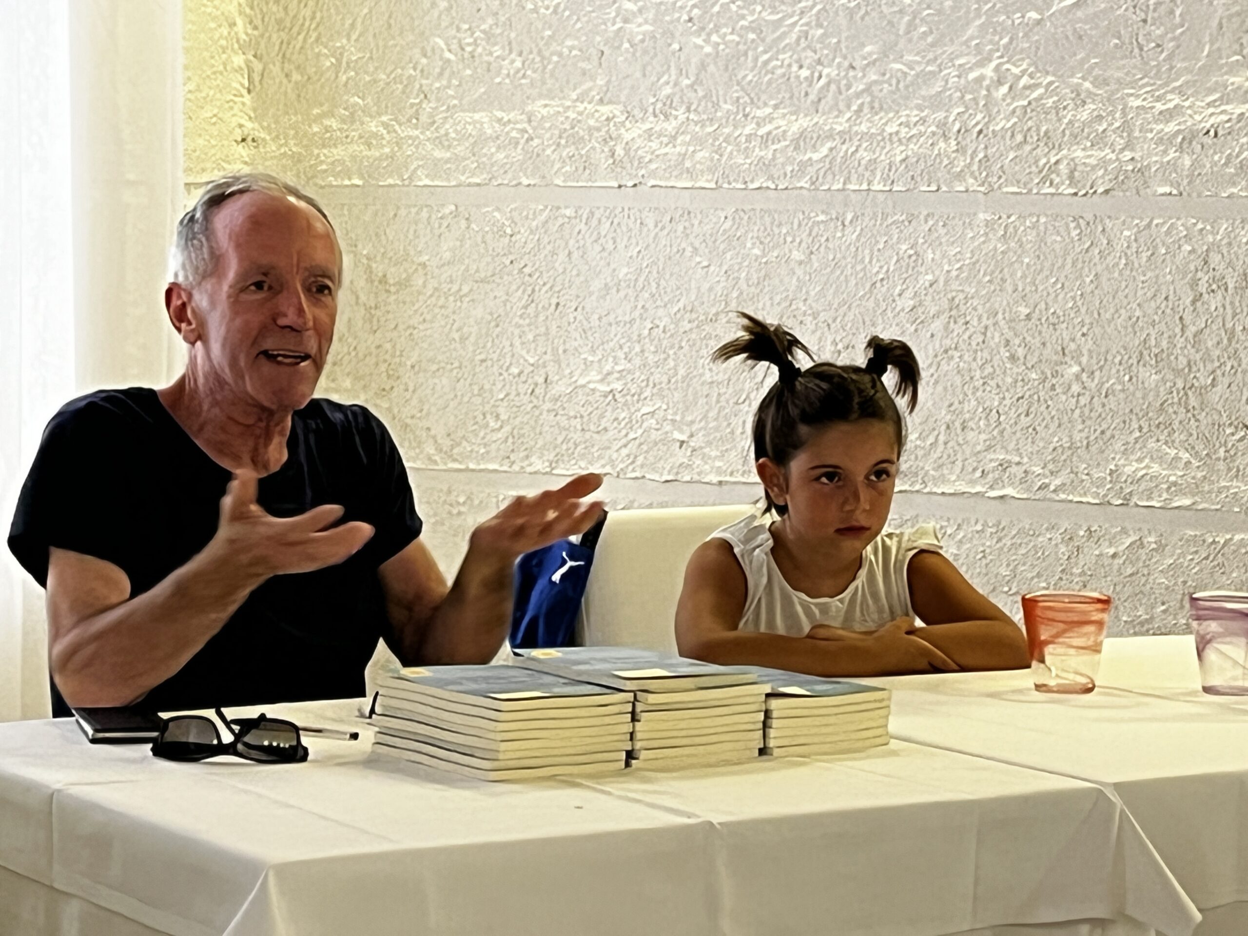 La mia perla ha tre onde colorate, dove la perla sta per l’Isola d’Elba e le onde colorate per i nipoti. Questo il senso del nuovo libro di Giovanni Frangioni che è stato presentato nella mattinata del 1 Agosto al ristorante da Lido nel centro storico di Portoferraio. Sono stati numerosi gli amici e conoscenti che hanno raccolto, anche con trasporto emotivo, l’invito alla presentazione. Frangioni, è stato loquace e esaustivo nello spiegare i motivi che lo hanno spinto a scrivere il libro che possiamo definire autobiografico e che rimarrà testimone di fatti di vita realmente accaduti e raccontati con verità anche inedite. “Nella vita non incontriamo solo amici – ha esordito Frangioni- ma anche avversari pronti a denigrarti, non racconteranno bene della tua vita ai tuoi cari nipoti” ed ecco perché il libro verità. Frangioni è stato ed è ancora un appassionato di politica, sport, dinamiche sociali, ambiente e territorio. Già segretario della CGIL dell’Elba, presidente di Esa, oggi impegnato ancora nella vita sociale dell’Elba ma con un obiettivo primario, essere un buon nonno.