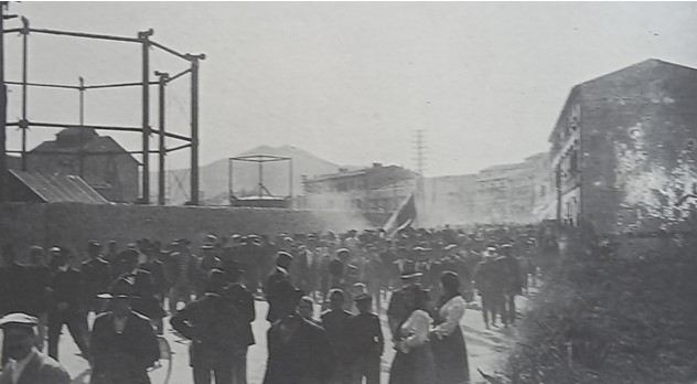 Il 29 giugno 1911 ha inizio uno sciopero : gli operai dell’alto forno n. 2 chiesero alla direzione dello stabilimento siderurgico di riportare da 6 a 8 il numero dei lavoranti addetti al campo di colata .