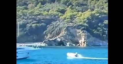 Un gommone con motore fuori bordo, probabilmente un tender di una imbarcazione ben più grande, è stato ripreso nelle acque del golfo di Lacona, probabilmente nella zona prospiciente la spiaggia di Laconella, mentre navigava a tutta velocità senza nessuno a bordo. Probabilmente il conducente dell’imbarcazione è caduto in acqua, e la stessa ha continuato a navigare girando in cerchio in mezzo alle imbarcazioni ancorate alla fonda e anche a qualche bagnante.