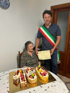 100 anni e la festa che si è svolta a Procchio per Iolanda Vai. L’amministrazione comunale marcianese ha festeggiato la sua centenaria con il sindaco Simone Barbi che ha consegnato una pergamena alla signora Iolanda davanti ad una torta di compleanno.