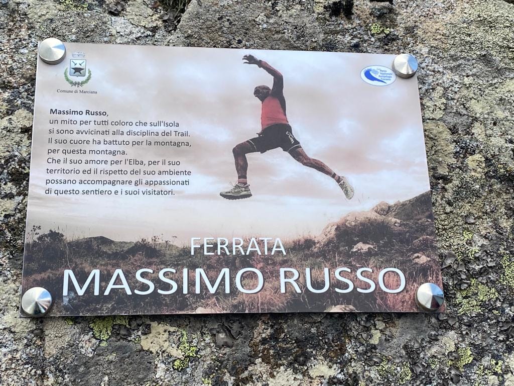 “Massimo Russo, un mito per tutti coloro che sull’isola si sono avvicinati alla disciplina del Trail. Il suo cuore ha battuto per la montagna, per questa montagna. Che il suo amore per l’Elba, per il suo territorio ed il rispetto per il suo ambiente possano accompagnare gli appassionati di questo sentiero e i suoi visitatori”.